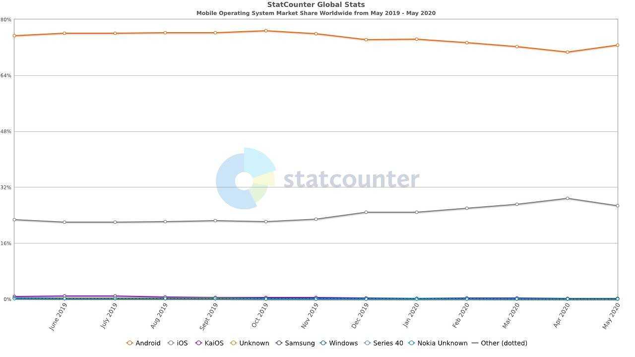 Уровень популярности мобильных ОС Microsoft в 2020 году вплотную приблизился к нулю